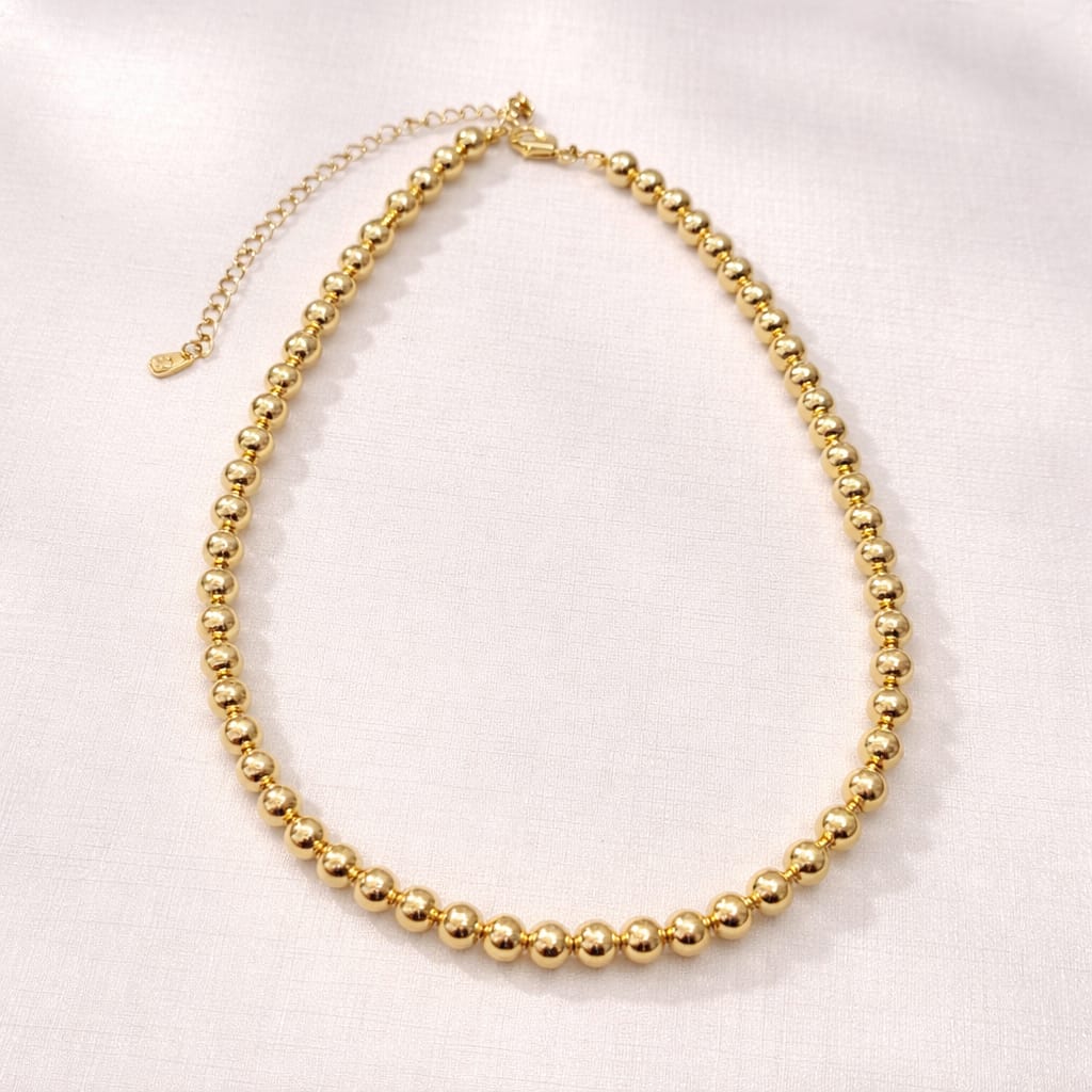 Choker bolas lisas douradas em todo o seu comprimento.