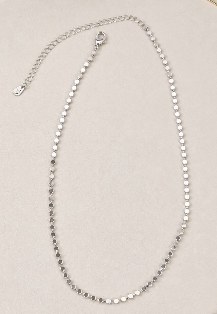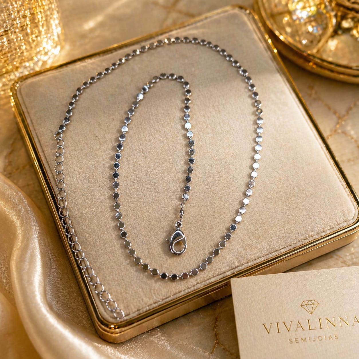 Pulseira com chapinhas fininhas feitas em ródio branco.