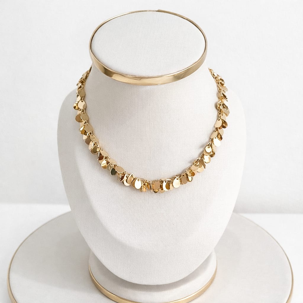 Colar medindo 35cm de comprimento. Extensor de 10cm.